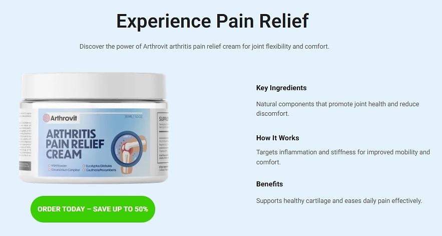 Arthrovit is a prevalent yet frequently incapacitating condition that impacts millions globally, resulting in joint discomfort, rigidity, and diminished mobility. Although numerous treatment alternatives exist, many individuals pursue rapid, non-invasive, and drug-free solutions to alleviate their pain. This is where Arthritis Pain Relief Cream plays a significant role. Formulated for topical application, these creams deliver targeted relief by infiltrating the skin and acting directly on the affected joints and muscles. With natural and medically endorsed components such as menthol, capsaicin, and anti-inflammatory substances, they offer soothing alleviation and aid in diminishing inflammation without the adverse effects associated with oral medications. Convenient to apply and fast-acting, Arthrovit have emerged as a preferred remedy for those seeking to naturally and effectively alleviate joint pain and enhance mobility.