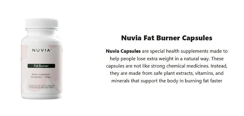 Nuvia are dietary enhancements crafted to aid in weight management through natural avenues. Presented as a secure and effective remedy for decreasing body fat, these capsules comprise a mixture of organic constituents lauded for their fat-burning and metabolism-accelerating capabilities. Unlike many chemically formulated diet pills available, Nuvia Fat Burner adopts a more holistic perspective, concentrating on overall wellness, detoxification, and sustained weight reduction.