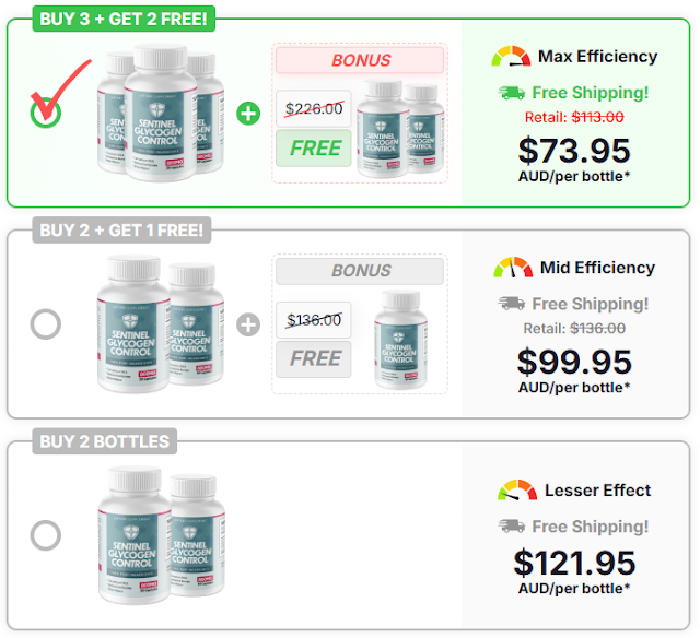 Buy 2 Bottles Of Sentinel Glycogen Control Price - $121.95 AUD/per bottle* + FREE SHIPPING